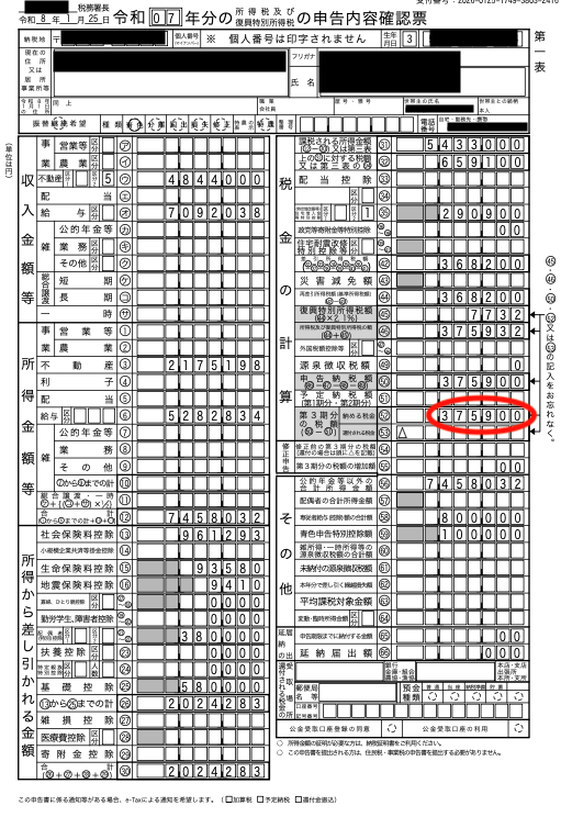 計算の末に出た答えは、「約37万円の納税」でした。